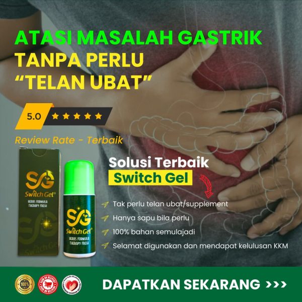 PERHATIAN : KHAS UNTUK ANDA YANG MEMPUNYAI GERD, GASTRIK DAN ANGIN DALAM BADAN. STOP TERSEKSA, SAPU JE SWITCH GEL !